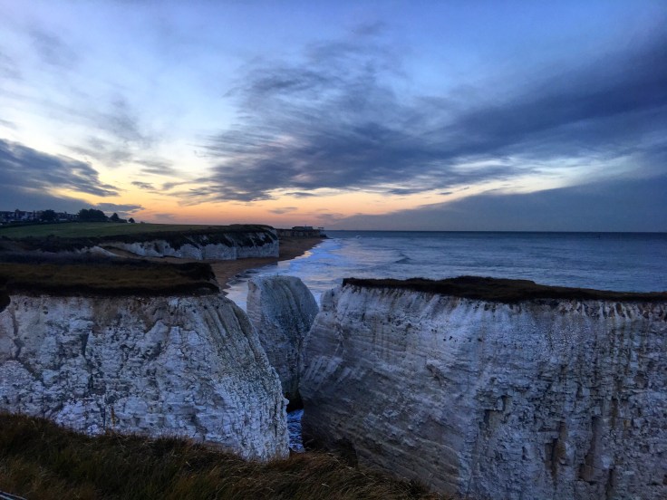 Getting there seemed easy enough, at least initially… then I realised the bussing system isn’t quite the same outside of London. I took a high speed Southeastern train from London St. Pancras to Broadstairs where I managed to find a bus that went kind of where I needed to be (using cash). I then walked for .5 mile to the hotel. Next time I’ll take a bag to carry rather than a rolling carryon (though it is small- it is noisy!). Once at the hotel, I was greeted by a gorgeous sunset and coastal chalk cliffs – not unlike the cliffs of Dover further south. The hotel was lovely and apparently quite posh during high season. I explored as much as I could around the cliffs before it got dark and cold, then I enjoyed a nice meal at the hotel restaurant and watched the movie About Time before heading to bed. The next day was a wintery mix in the morning and it was pretty miserable for .5 mile walk to the bus to then go back to the train station to catch a train to Sandwich. I called a cab and it was a brilliant idea!