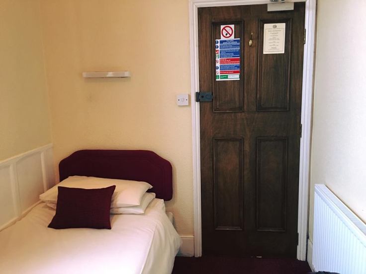 The first written usage of the English word appeared in Edward Gibbon‘s journal, in longhand, referring to “bits of cold meat” as a “Sandwich”.[14] It was named after John Montagu, 4th Earl of Sandwich, an eighteenth-century English aristocrat. It is said that he ordered his valet to bring him meat tucked between two pieces of bread, and others began to order “the same as Sandwich!”[6][7] It is commonly said that Lord Sandwich was fond of this form of food because it allowed him to continue playing cards, particularly cribbage, while eating, without using a fork, and without getting his cards greasy from eating meat with his bare hands.[6]I stayed at the King’s Arms hotel, in possibly the tiniest room you may have ever seen. That being said, I was the only guest staying there in one of the 7 rooms over a nice pub which was full of Christmas Dinner eaters and the staff was very friendly to me. Bonus, when I checked in they had already turned the radiator on for me and my room was nice and toasty!